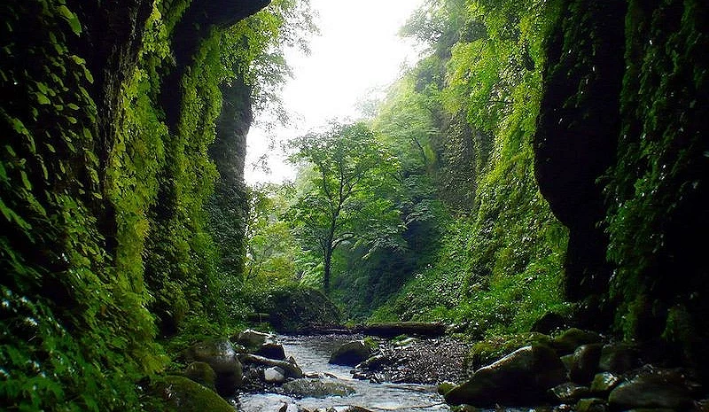 从瀑布洞穴中看出去的小又川溪谷图片来源:神戸観光壁纸写真集 KOBE Photo Gallery