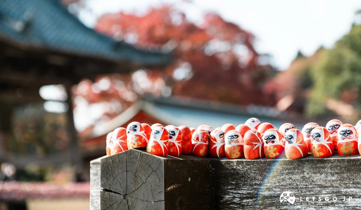 想入境随俗一下吗?本堂前方的有贩售多种尺寸与颜色的「胜利达摩」,可现场写愿望、画上一只眼睛然后带回家祈福,待愿望实现后再回到胜尾寺补画另一眼并奉还。从迷你手掌大小到超大号皆有,部分还附有木箱包装,送礼自用两相宜!