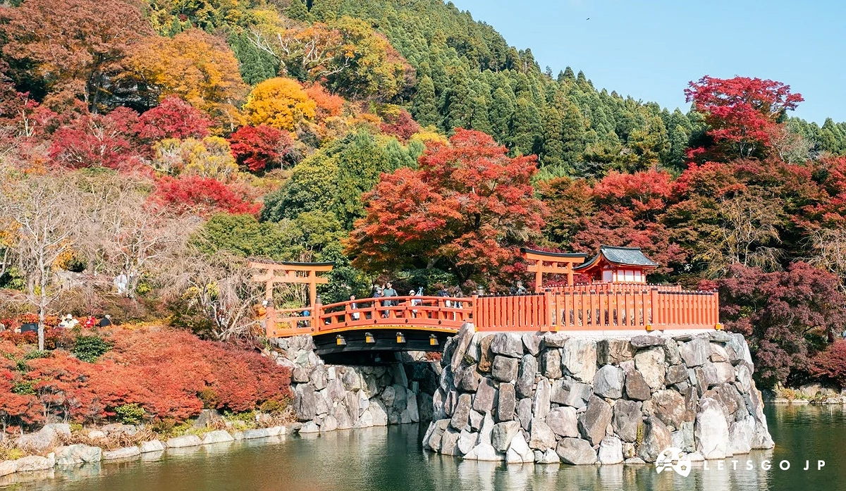 秋天是胜尾寺最广为人知的赏枫季,整座山寺被染成金黄与鲜红,湖畔倒映红叶与鸟居,宛如郊外秘境。尤其是午后阳光洒落时,红叶层层闪耀,令人驻足流连。